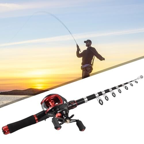 LAPOOH Fishing Rod and Reel Combo 2.1m Telescopic Fishing Rod with Right Hand Baitcasting Reel.