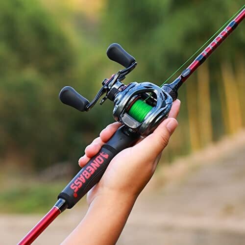 One Bass Fishing Rod Reel Combo, 2-Piece Baitcasting Medium Fast Carbon Handle