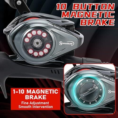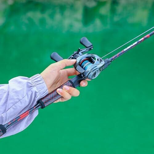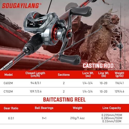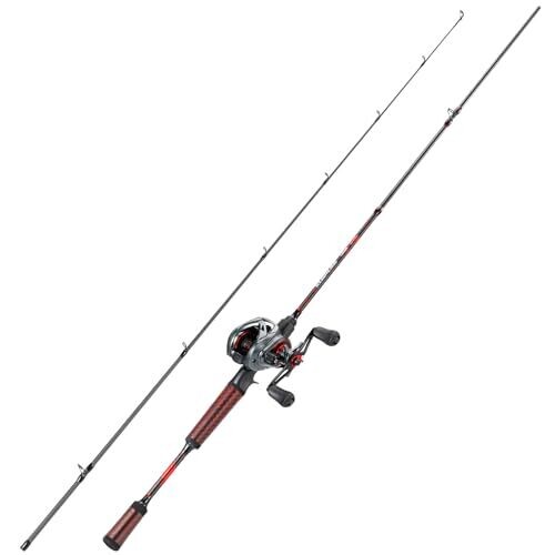 Sougayilang Fishing Rod and Reel Combo, Baitcasting Baitcast Reel, 2-Piece 6.9Ft Fiberglass Wrapped Carbon Fiber Rod, Right Hand
