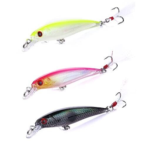 • 10 Fishing Lure Minnow Crankbait Set with Treble Hooks for Bass Trout Redfish