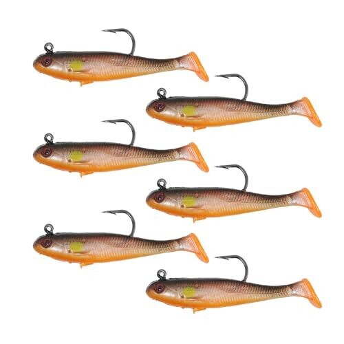 The six-lure set is compact for easy storage in tackle boxes and provides realistic design, color, and texture resembling live bait.