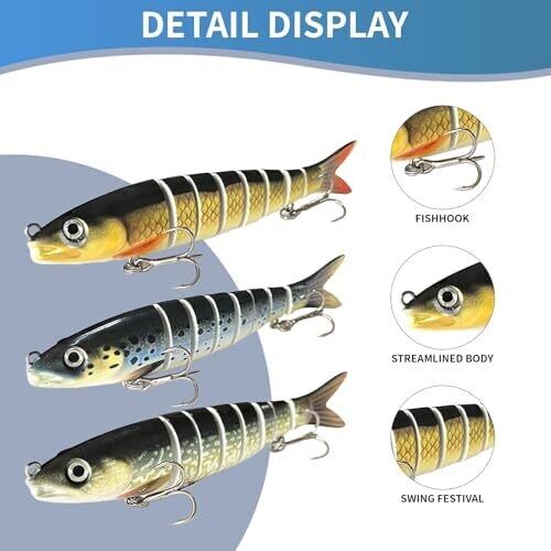 • 8 Segment Lifelike Fishing Lures for Freshwater Swimbait for Bass Trout