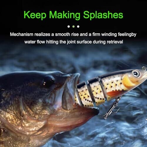 The lure features an 8-segment multi-jointed body enabling lifelike swimming motion.