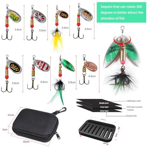 - Includes 16 colorful spinners and a portable carry bag for easy transport on ponds, lakes, and streams.