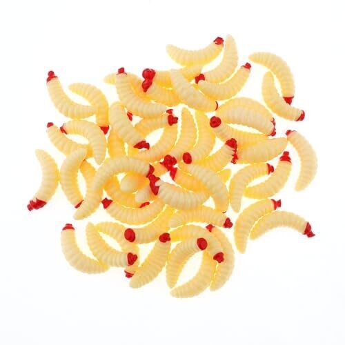 • Origlam 50pcs Soft Plastic Worms, Bass Lure Baits, Worms for Saltwater (Beige)