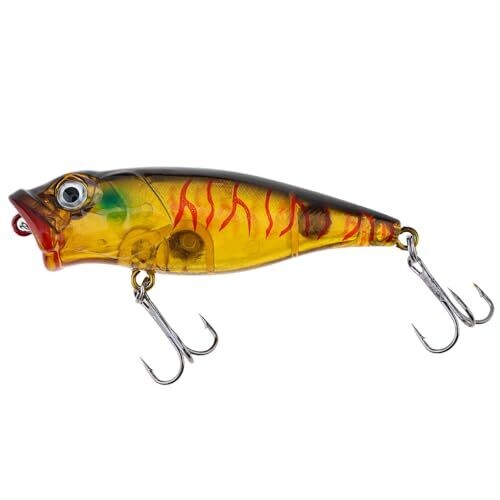 - Topwater popper action paired with ultra-sharp treble hooks for strong hooksets.
