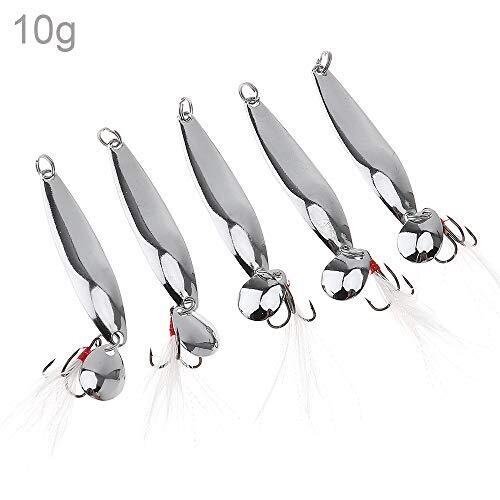 Sg Store 5pcs Metal Sea Lures 65Mm Wedge Slice Treble Hooks with 10 Swivels