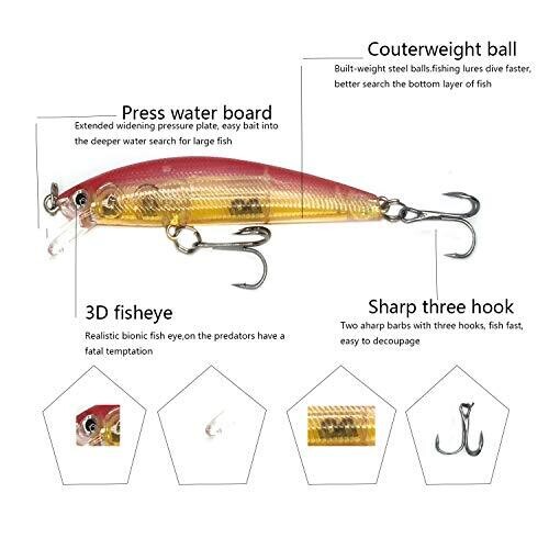 Realistic minnow profile with etched scales and 3D lifelike eyes to attract predators. A rolling transfer system creates erratic side-to-side action, while a long bill enhances depth and vibration. Suitable for freshwater and saltwater, targeting trout, bass, salmon, and more with ready-to-use hardware.