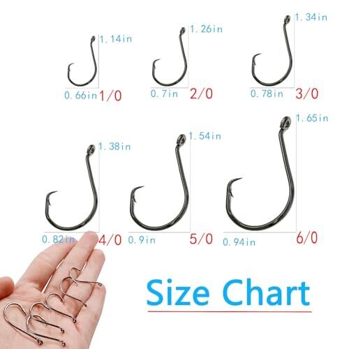 - All-in-one saltwater circle hooks set with 150pcs in six sizes (1/0, 2/0, 3/0, 4/0, 5/0, 6/0) housed in a reusable portable plastic box.