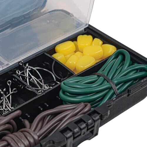 - Organized tackle box with compartments and a semi-transparent lid for fast, at-a-glance access and storage.