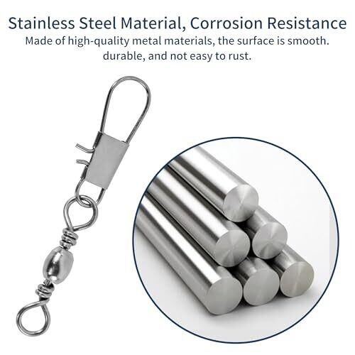 High-performance fishing swivels set with 100 pieces in five sizes for versatile tackle. Includes a storage box with compartments, durable carbon steel construction with rust-resistant plating for freshwater and saltwater, rotatable design to minimize twists and quick lure rig changes.