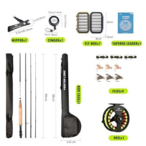 Master Logic Fly Fishing Rod and Reel Starter Kit, Graphite Rod with Cork Handle, Die Cast Reel, Box & Flies (5/6Wt-8'0