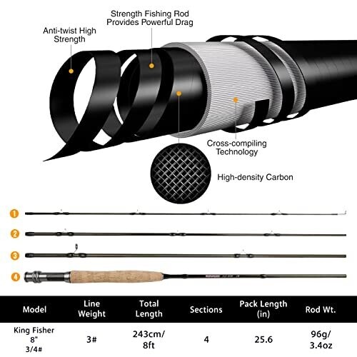 Kylebooker Fly Fishing Rod with Reel Combo Kit (4Wt 8'0", 4Sec Rod, 3/4 Reel)