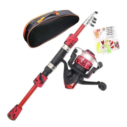 Amagogo Telescopic Rod and Reel Combo for Starter Children Carrier Bag Red