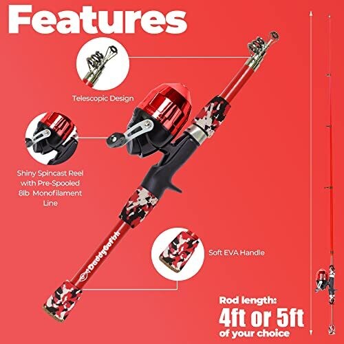 - Colorful red design that appeals to boys and girls and makes fishing fun