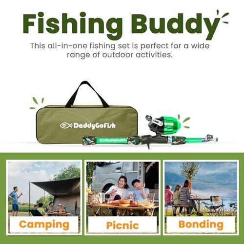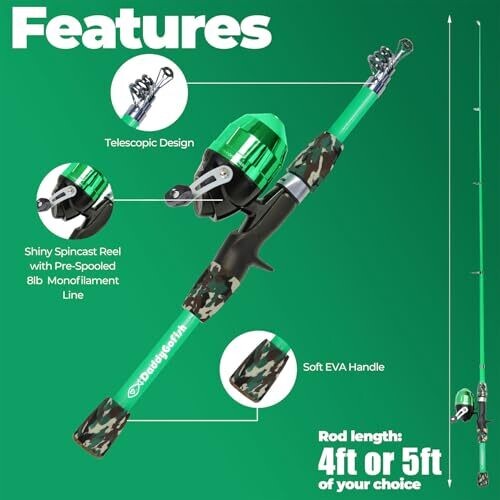 • DaddyGoFish Kids Fishing Pole - Rod Reel Combo Starter Kit (Green, 4Ft)