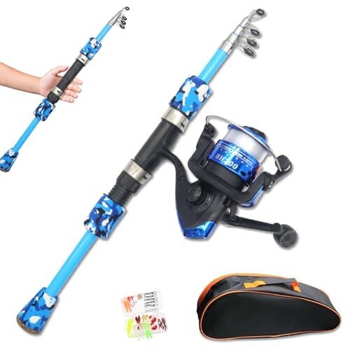 An engaging, beginner-friendly starter set with a telescopic five-section rod, reel, and a curated lure box. Lightweight and portable, it includes a durable canvas bag for easy transport, making it ideal for introducing kids to fishing at lakes, rivers, and beyond.