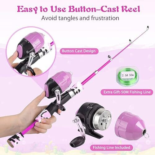 - Simple push-button spincast reel operation suitable for beginners