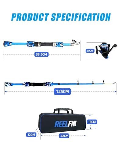 • Reelfin Spinning Fishing Pole for Kids – Telescopic Rod & Reel Combo, Tackle Box (Blue)