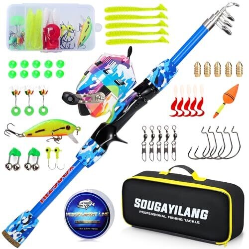 • Yongzhi Kids Fishing Rod and Reel Combo Lightweight Pole with Casting Reel Bag and Lures