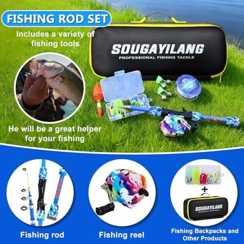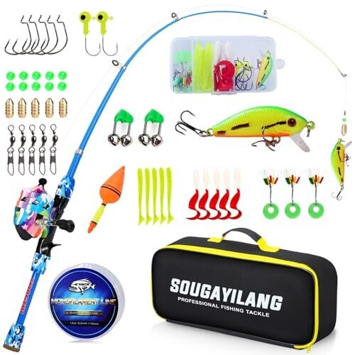 • YONGZHI Kids Fishing Rod and Reel Combo offers a bright, kid-friendly fishing kit designed for beginners and family fun.