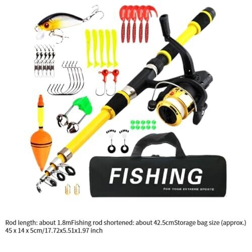 • Yueshengychuang Children Fishing Rod Telescope Combo Angelset for Parents Yellow