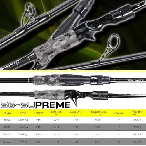 - Camouflage EVA grip delivers comfortable, secure handling and stylish outdoor appeal.