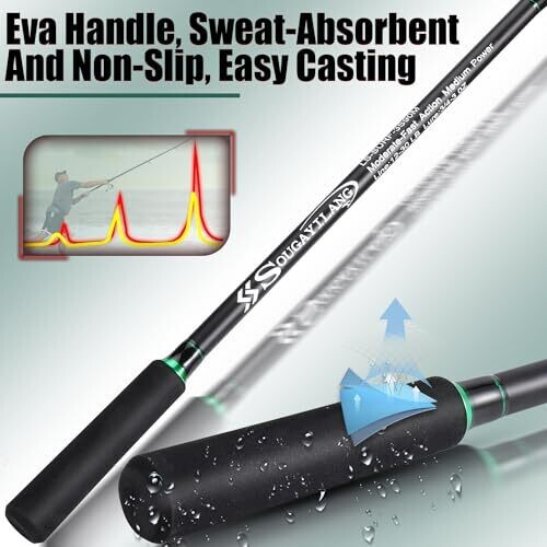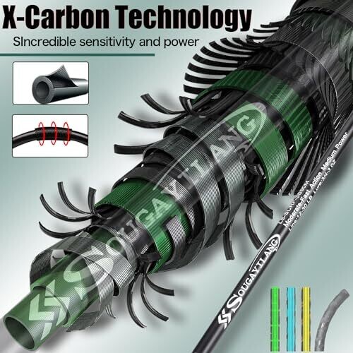 Sougayilang IM8 Carbon Surf Fishing Rod 3 Piece Travel Spinning Rod - 9'