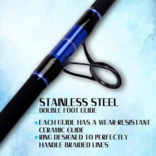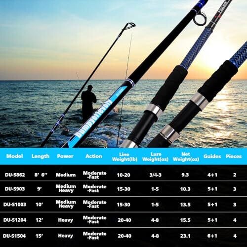 Designed for long, accurate beach casts with surf-ready performance. Built on a 24-ton carbon blank for light, responsive action. Blue SuperPolymer handle provides a non-slip grip, while stainless steel guides with ceramic inserts ensure smooth line flow. Travel-friendly 2–4 piece construction.