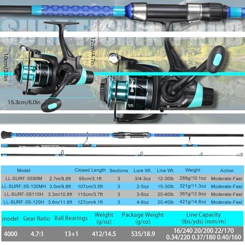 - Experience epic beach and cliff fishing with a versatile 9' medium/heavy 3-piece travel rod paired with a robust 4000-size reel.