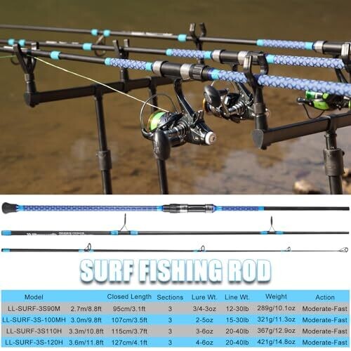 Sougayilang Carbon Surf Fishing Rod 3 Piece Spinning Rod for Travel - 9'