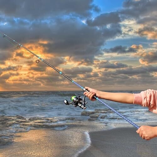 - Ergonomic handle with a non-slip finish and subtle patterning for comfortable long casts.
