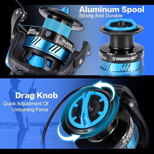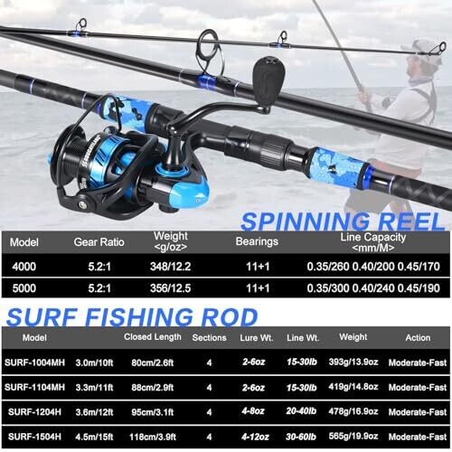 Sougayilang Surf Fishing Rod and Reel Combo, 4-Piece MH/H Saltwater, 5000 Spinning Reel (12' Blue)
