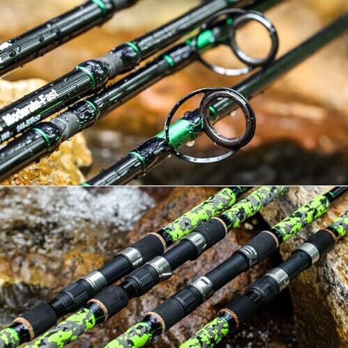 - Durable components include stainless steel hoods, high-density EVA grips, and ceramic-ring guides for smooth line flow.