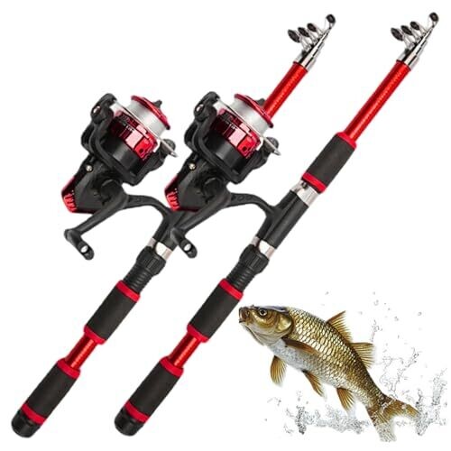 • 2pcs Telescopic Fishing Rod and Reel Combos, 6Ft Fiberglass Telescopic Rod with Spinning Reel
