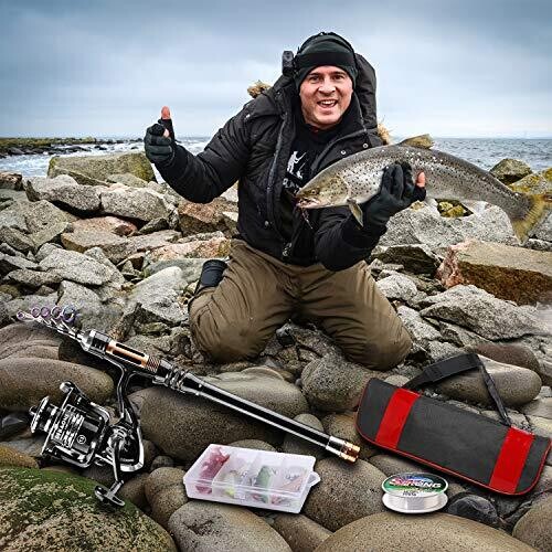 - Complete gear set includes fishing line, lures, hooks, and a durable carrier bag for convenient on-the-go use.