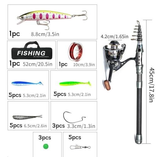 Fishing Rod and Reel Combos, Telescopic Pole with Reel for Sea and Freshwater Fishing Kit