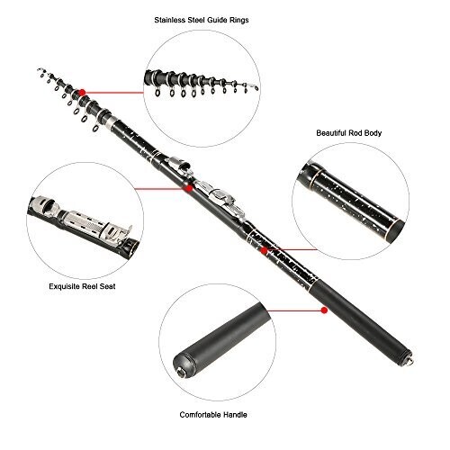 Premium carbon fiber construction combines strength with feather-light portability. Telescopic design collapses to a compact length for easy transport, while stainless steel guides and reel seat ensure durable line management. Versatile for sea, river, pond, and lake fishing across multiple lengths.