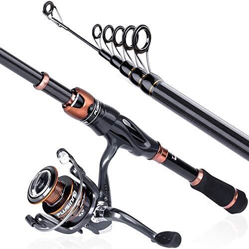 Plusinno Rod Reel Combos, Toray Carbon Telescopic Rod, 12+1 Stainless Reel, Freshwater Gear 1.8M