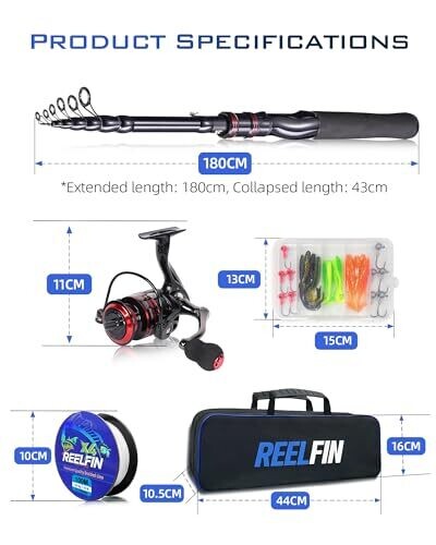 • Reelfin Fishing Rod and Reel Combos, Telescopic Pole with Reel (1.8M, Carrier Case)