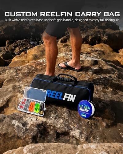 • REELFIN carry bag with reinforced base and soft-grip handle for comfortable transport and organized gear.