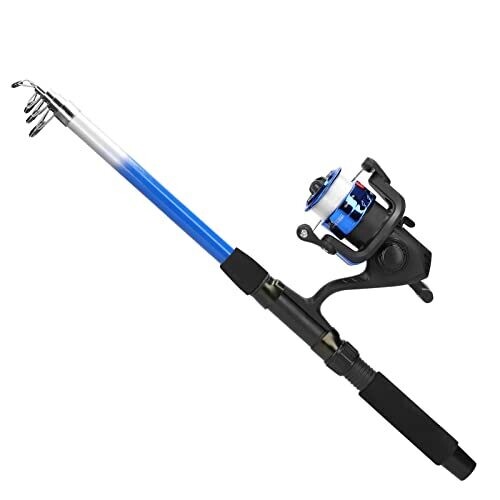 • Telescopic fishing rod and reel set designed for portability and ease of use.
