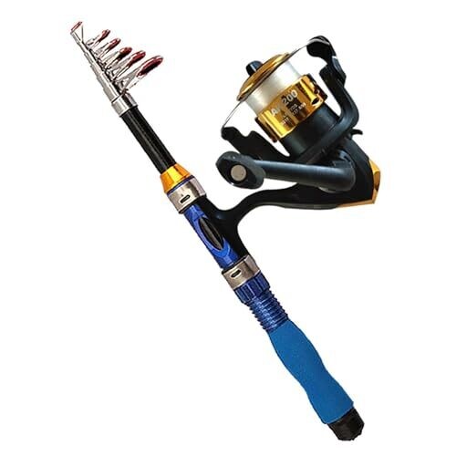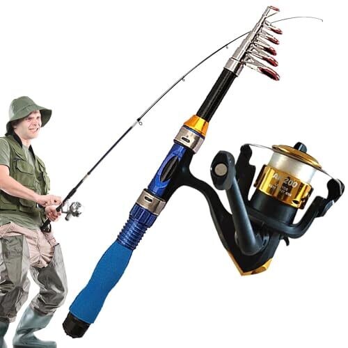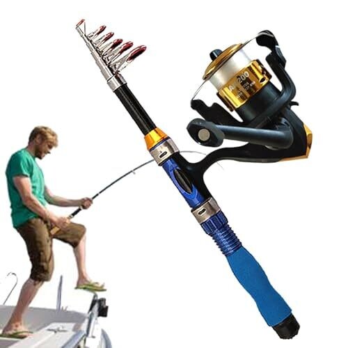 • Telescopic fiberglass rod paired with a versatile reel combo for easy casting and quick setup.