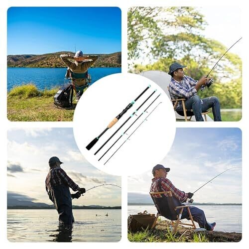 4 Section Fishing Rod - Fiberglass Travel Rod, Portable Pole for River, Kayak, Beach
