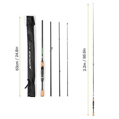 • Portable Travel Spinning Fishing Rod Lightweight Carbon Fiber 4-Piece Fishing Pole 2.2M