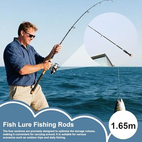 The rod features a compact, multi-section design that enables easy transport and versatile use in various fishing environments.