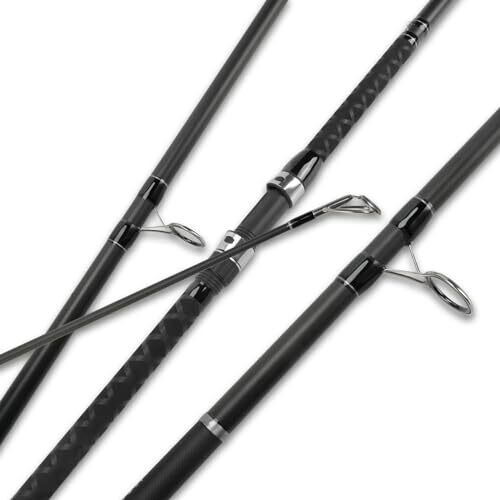 Lightweight carbon fiber construction for all-day comfort and reduced fatigue. Two-piece design fits easily in backpacks. Ergonomic cork handle for a firm grip in wet conditions. Stainless steel guides ensure durable line guidance. Beginner-friendly with great value and performance.