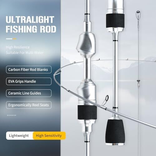 Ultra-light design for easy portability and extended casting. High-elasticity carbon fiber rod blank delivers strong, responsive performance. EVA handle provides a comfortable, anti-slip grip. Ceramic guides ensure smooth line flow and durability. Ultra-sensitive rod tip enhances bite detection and accuracy.