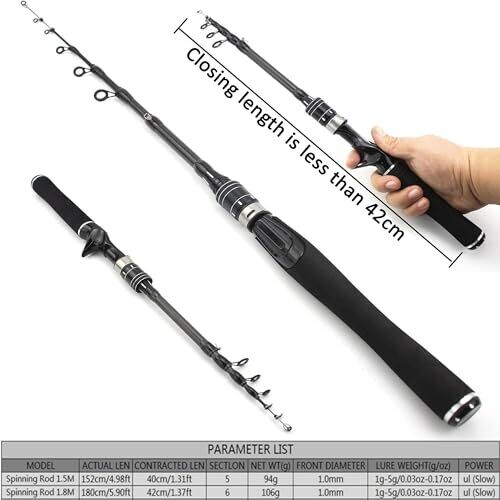 • Ul Power Telescopic Fishing Rod for Beginners and Kids 1.5M 1.8M 1.98M (Black, 1.5M)