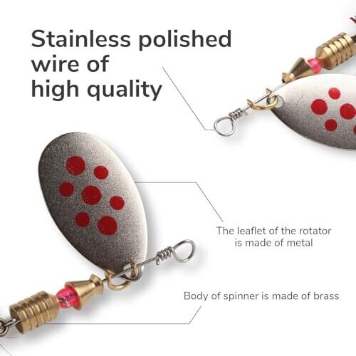 Includes rooster tail design with inline spinner blades and three-claw hooks.
